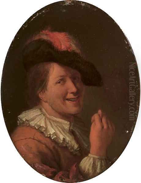 Bring the timeless beauty of Arie de Vois's A man in a plumed hat making an obscene gesture into your home with a handmade oil painting reproduction. Carefully recreated on canvas by skilled artists using traditional techniques, this piece captures the delicate brushwork, subtle light, and vibrant color of the original masterpiece. With museum-level quality and rich texture, it brings elegance and artistic depth to any space. Enjoy free shipping and make this masterpiece a part of your personal collection.