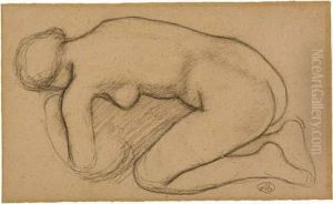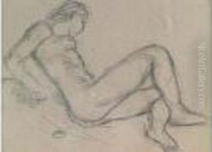 Femme Assise De Profil A Droite, Un Genou Plie, Un Genou Releve. 1927.