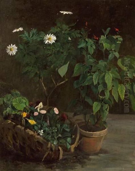 "plante En Pot, Marguerites Et Panier De Fleurs".