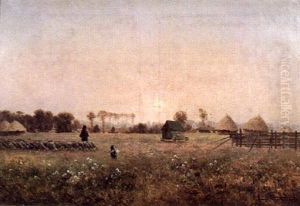 Champ De Ble, Meules De Foin, Berger Et Ses Moutons, Et Moulin En Champagne