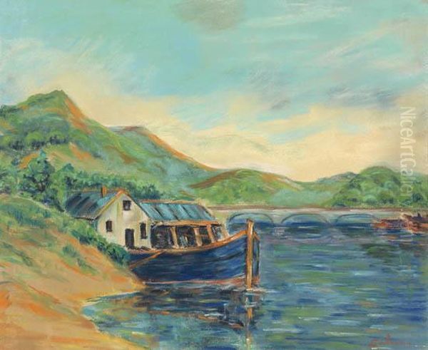 Au Bord De Riviere, Bateau Et Pont