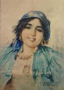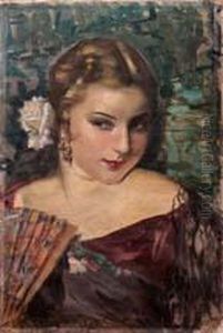 Arnaldode Lisio Napoli ) Ragazza Aldavanzale Olio Su Tavola Cm 34.5x25 Firmato In Basso A Sinistra.a.de Lisio