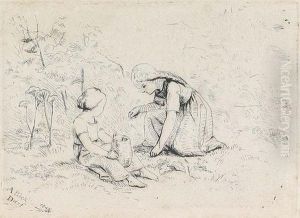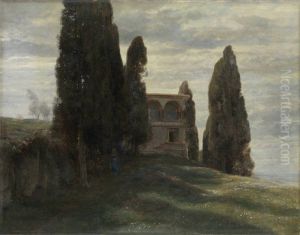 Kvinna Med Svart Sloja. Sign "nach Bocklin J.v.f."