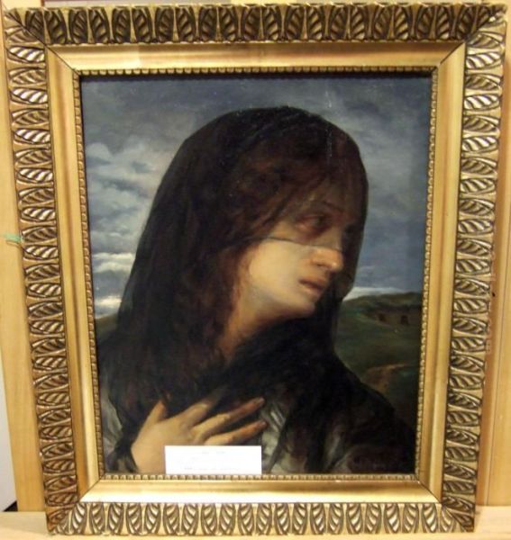 Kvinna Med Svart Sloja. Sign "nach Bocklin J.v.f."