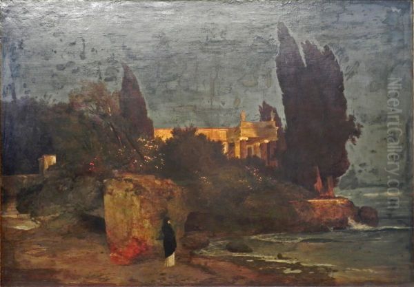 Bring the timeless beauty of Arnold Bocklin's Villa am Meer I into your home with a handmade oil painting reproduction. Carefully recreated on canvas by skilled artists using traditional techniques, this piece captures the delicate brushwork, subtle light, and vibrant color of the original masterpiece. With museum-level quality and rich texture, it brings elegance and artistic depth to any space. Enjoy free shipping and make this masterpiece a part of your personal collection.
