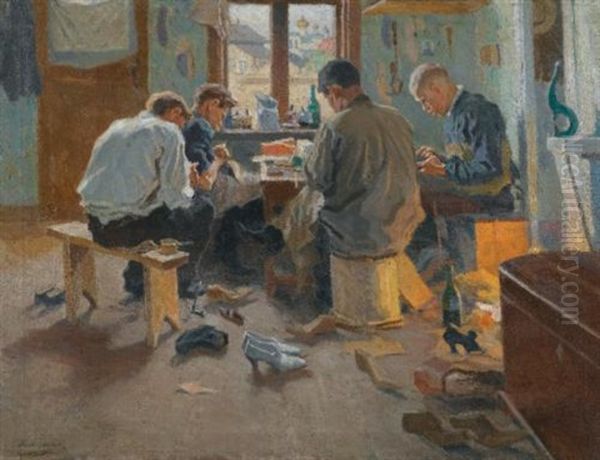 Bring the timeless beauty of Arnold Borisovich Lakhovsky's The Shoemakers into your home with a handmade oil painting reproduction. Carefully recreated on canvas by skilled artists using traditional techniques, this piece captures the delicate brushwork, subtle light, and vibrant color of the original masterpiece. With museum-level quality and rich texture, it brings elegance and artistic depth to any space. Enjoy free shipping and make this masterpiece a part of your personal collection.