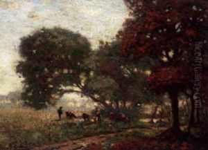 Farmhands With Their Cattle On An Autumnal Evening
