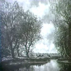 River Landscape With Cattle Resting