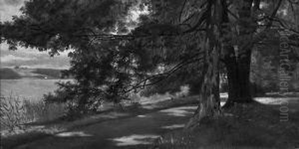 "partie Am Starnberger See". Rucks. Nachlassbestatigung. Ol Auf Lwd. Auf Karton. 23 X 46,5 Cm. Rahmen