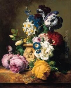 Bring the timeless beauty of Arnoldus Bloemers's A Bouquet Of Flowers In A Terracotta Vase On A Marble Ledge With A Pomegranate And Grapes into your home with a handmade oil painting reproduction. Carefully recreated on canvas by skilled artists using traditional techniques, this piece captures the delicate brushwork, subtle light, and vibrant color of the original masterpiece. With museum-level quality and rich texture, it brings elegance and artistic depth to any space. Enjoy free shipping and make this masterpiece a part of your personal collection.