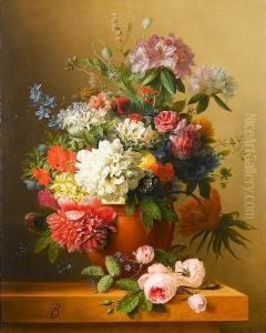 In A Terracotta Urn On A Ledge Oil Painting by Arnoldus Bloemers