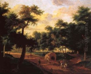 A Country Crossroads With Figures In The Foreground