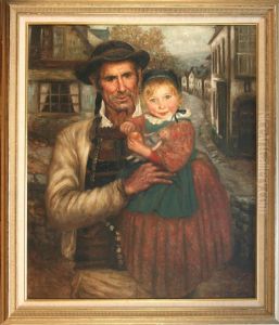 Above Runswick, Father And Daughter Beside A Stream