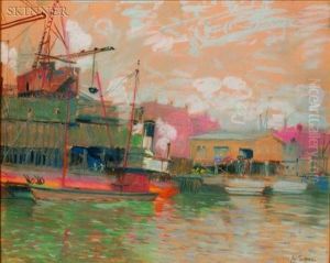 Early Morning On The Charles River And Figure Sketch/a Double-sided Work