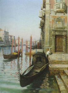 Blick Auf Einen Kanal In Venedig Mit Palasten Und Figuren