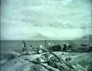 Strandpartie Mit Fischerbooten Und Kleiner Hafenstadt