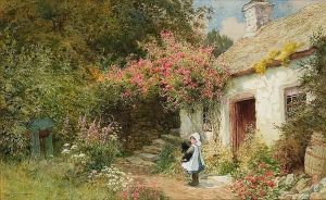 Strachen A Young Girl In A Cottage Garden