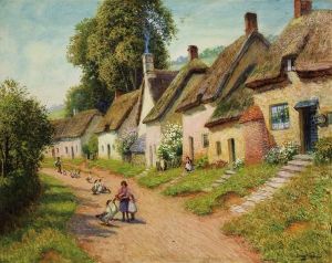 A Village Lane With Figures And Geese