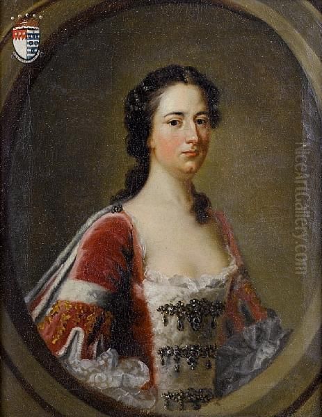 Portrait Of John Percival, 2nd Earl Egmont,bust-length, In Peer's Robes; And Portrait Of Catherine, Ladyegmont, Bust-length, Each Within Painted Stone Ovals And Chargedwith The Sitters' Coats-of-arms