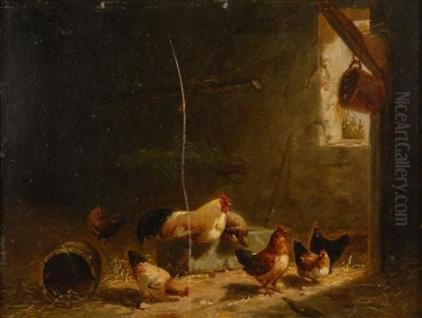 Barn Interior With Chickens
