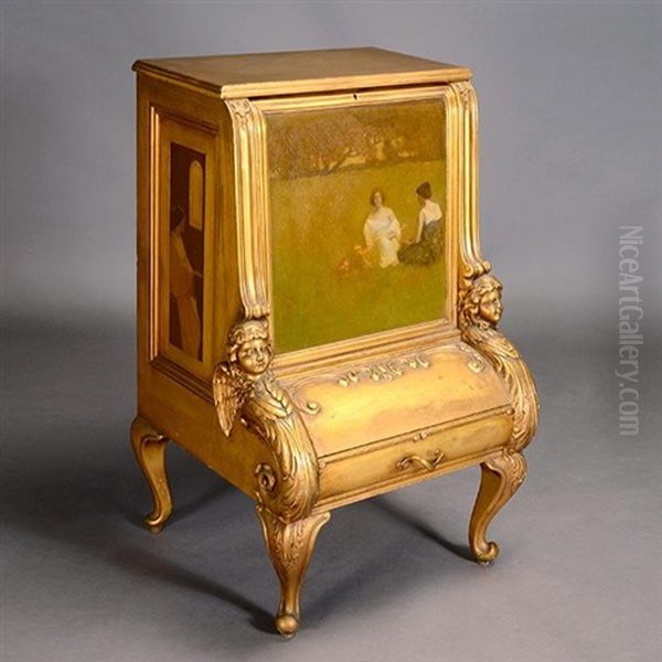 "women In Repose" Painted On Music Cabinet (3 Works)