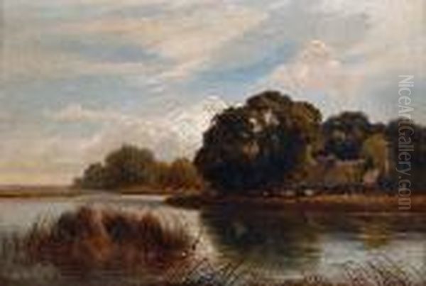 Cattle Watering In A Summer River Landscape