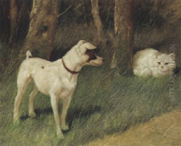 Bring the timeless beauty of Arthur Heyer's A Jack Russell Terrier With A White Persian Cat into your home with a handmade oil painting reproduction. Carefully recreated on canvas by skilled artists using traditional techniques, this piece captures the delicate brushwork, subtle light, and vibrant color of the original masterpiece. With museum-level quality and rich texture, it brings elegance and artistic depth to any space. Enjoy free shipping and make this masterpiece a part of your personal collection.