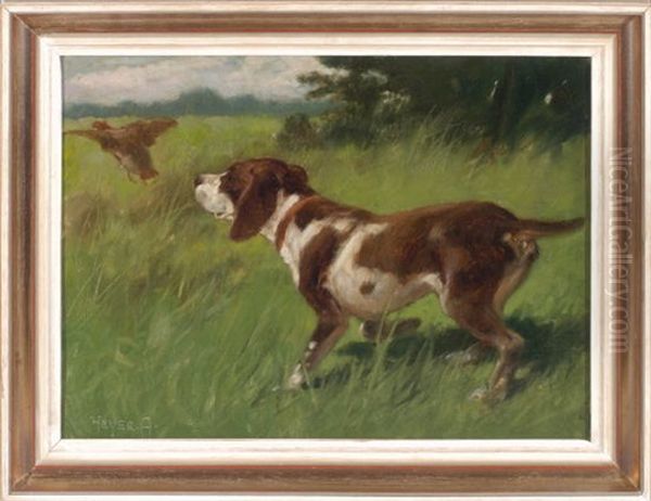 Bring the timeless beauty of Arthur Heyer's Pointer Mit Aufgescheuchtem Vogel into your home with a handmade oil painting reproduction. Carefully recreated on canvas by skilled artists using traditional techniques, this piece captures the delicate brushwork, subtle light, and vibrant color of the original masterpiece. With museum-level quality and rich texture, it brings elegance and artistic depth to any space. Enjoy free shipping and make this masterpiece a part of your personal collection.