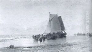 Fisherfolk Sorting Their Nets On Schoven Sands At Low Tide