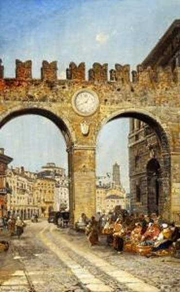 Continental Street Scene With Street Vendors