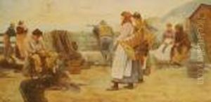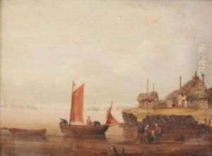 Dutch Harbour Scene With Figures Unloading The Catch