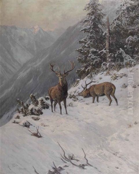 Bring the timeless beauty of Arthur Thiele's Red Deer Grazing In A Mountainous Winter Landscape into your home with a handmade oil painting reproduction. Carefully recreated on canvas by skilled artists using traditional techniques, this piece captures the delicate brushwork, subtle light, and vibrant color of the original masterpiece. With museum-level quality and rich texture, it brings elegance and artistic depth to any space. Enjoy free shipping and make this masterpiece a part of your personal collection.
