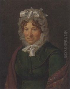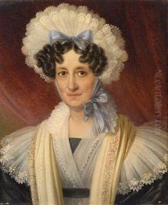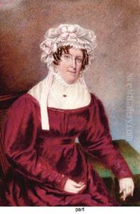 Mrs Thomas Grant, Wearing Dress With Ribbon Waistband, Her Lace Bonnet Adorned With Floral Spray