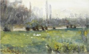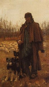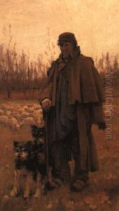 Winter Landscape With Figures, Horses And Dog Before A Stable