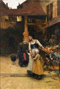 A North African Market Square With A Mamaluke Horseman Gallopingaway With A Captive Young Woman