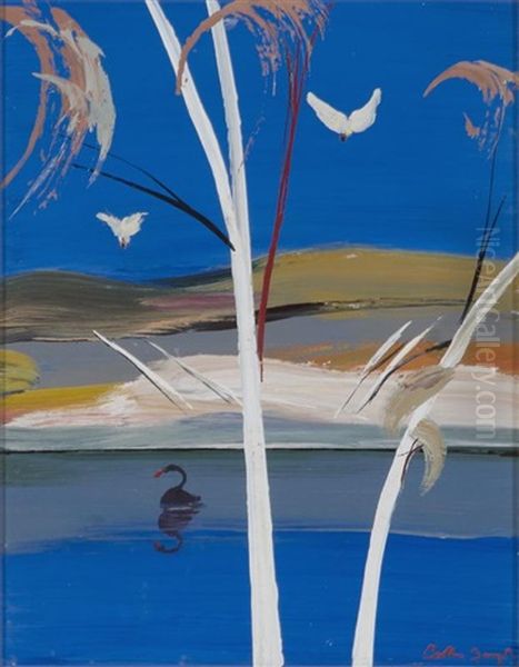 Shoalhaven Riverbank With Cockatoos And Black Swan
