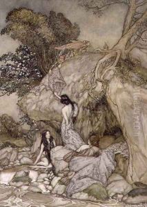 The Rhinemaidens teasing Alberich, illustration from The Rhinegold and the Valkyrie, 1910