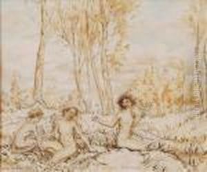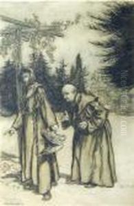 Figurative Subject, Depicting Soldiers With A Female Figure, Possibly The Kidnap