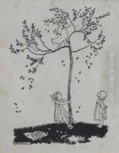 An illustration to J.M. Barrie's 'Peter Pan in Kensington Gardens' 'Away he flew, right over the houses to the Gardens'