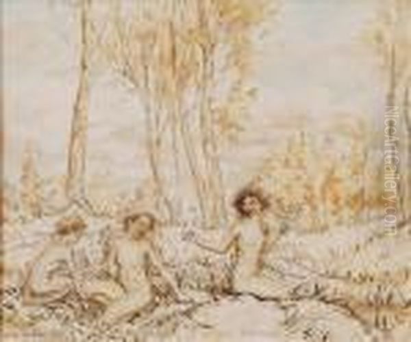 Three Wood Nymphsgathering Flowers