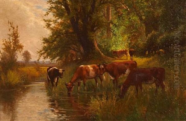 Bring the timeless beauty of Arthur Stanley Wilkinson's A Pastoral Landscape With Cattle Grazing And Watering In A Pond (+ Landscape; Pair) into your home with a handmade oil painting reproduction. Carefully recreated on canvas by skilled artists using traditional techniques, this piece captures the delicate brushwork, subtle light, and vibrant color of the original masterpiece. With museum-level quality and rich texture, it brings elegance and artistic depth to any space. Enjoy free shipping and make this masterpiece a part of your personal collection.