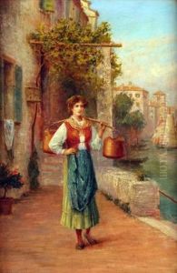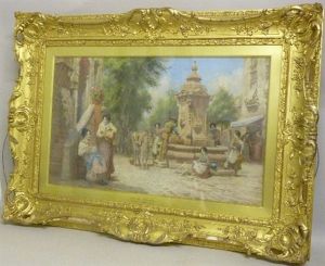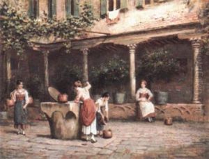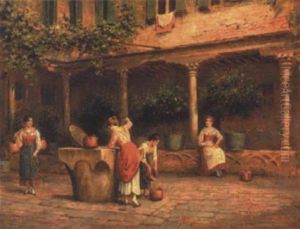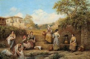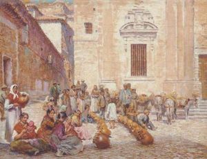 Frauen Mit Krugen Am Brunnen Einer Sudlandischen Stadt