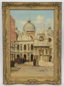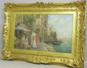 Kanal In Venedig Mit Gondeln Und Palastarchitektur (+ Venezianische Strassenansicht Mit Jungen Madchen An Einem Renaissancebrunnen; Pair)