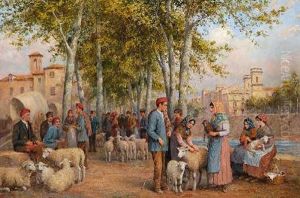 Italian Shepherd Boy In A Landscape With Flock And Ruins In The Distance