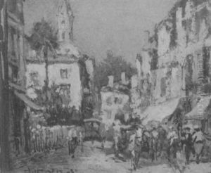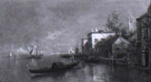 Seashore Scene Of Two Men Hauling Barrels And Nets