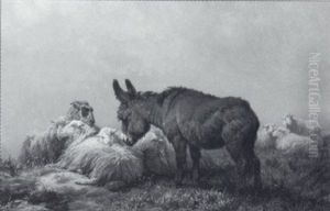 Ane, Moutons, Chevre Et Poules Au Pre