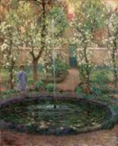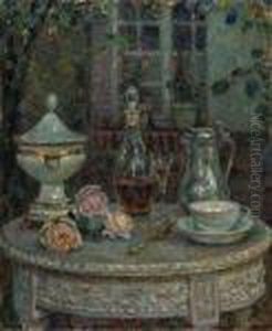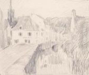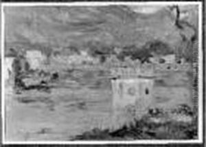 Paysage A La Tour. Huile Sur Panneau, Signee En Bas A Gauche