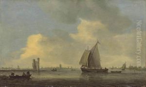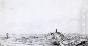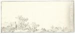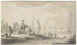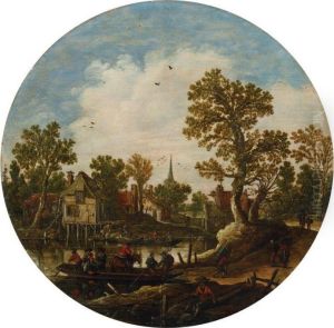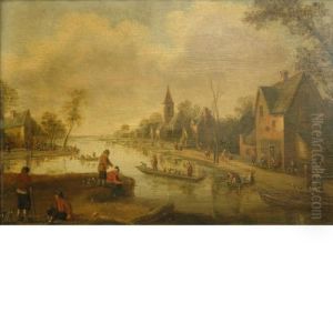 Reetgedeckte Hauser Mit Figurenstaffage An Einem Flussufer