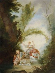 A Wooded Landscape With Milkmaids And Their Cattle Sheltering From A Shower