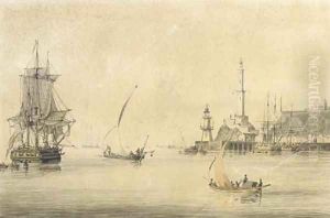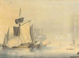 Sailing Craft On Opposite Courses Near Man-o'-war